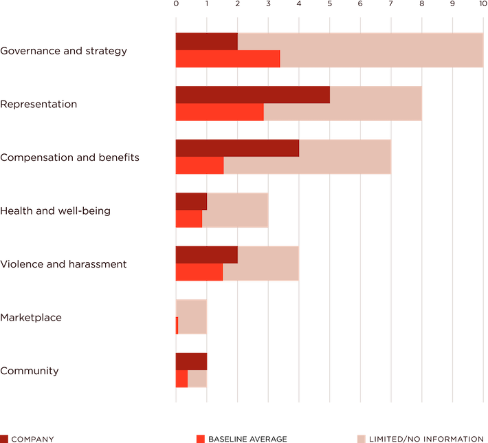 Amazon considers the fair representation of women in the workplace and publicly discloses the gender composition across various levels of leadership at least annually. With a workforce that is 43% female, the company currently maintains gender balance – 40-60% women – among its board members (50%). However, women are underrepresented among senior executives (17%) and managers (28%). The company offers professional development programmes with specific support for women through initiatives such as leaders’ workshops focused on gender diversity at its AmazeCon conference. Its AmazeWIT conference in India also brings together women working in technology. No information was found regarding the gender balance of the company’s workforce across occupational function or the gender breakdown of employee turnover or absenteeism rates.