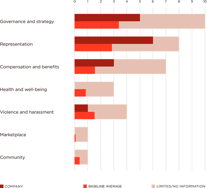 ABF publicly discloses the gender composition across various levels of leadership at least annually. With a workforce that is 52% female, women are underrepresented among its board members (33%) and senior management (36%). Primark, however, maintains gender balance – 40-60% women – in its senior leadership roles (49%) among a workforce that is 74% female.