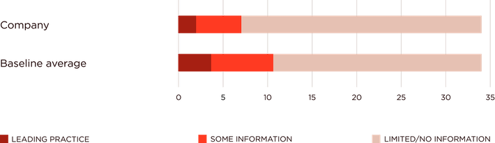 In the supply chain, no information was available concerning gender equality in leadership or whether the company addresses the systemic discrimination that women face, for example by requiring suppliers to have a policy in place that explicitly protects pregnant and married women workers.
